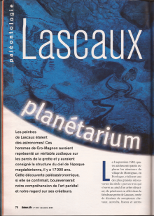 Janvier 2001. SCIENCES ET AVENIR " Le planétarium de Lascaux".