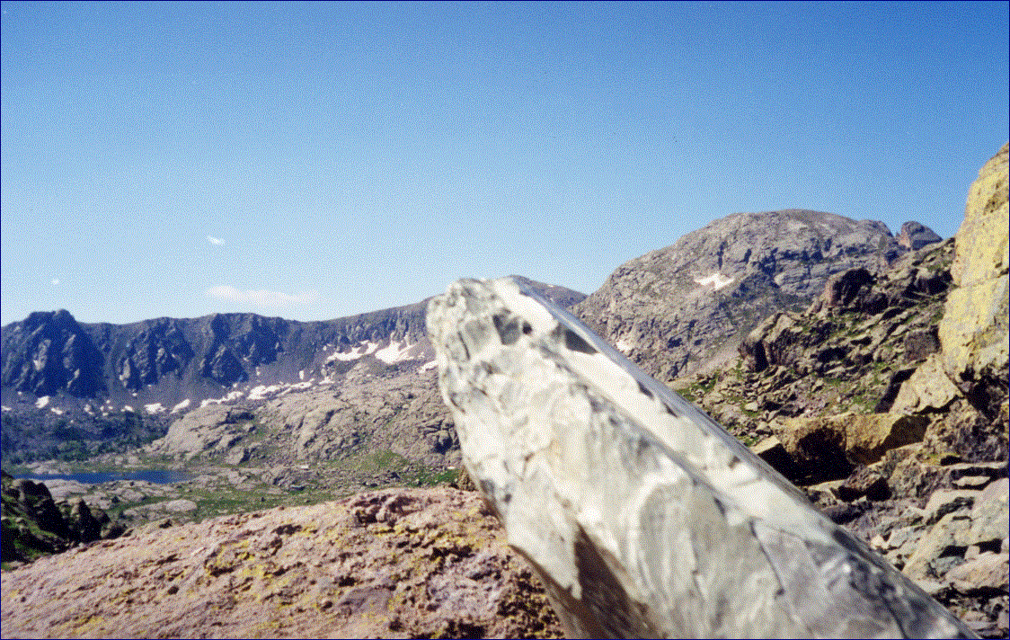 ---Comme tous les pèlerins prenons le chemin qui semble le plus naturel. En partant du Lac long supérieur, (voir carte ci-dessus) cheminons vers le mont Bego, en grimpant tout le long de la Vallée des Merveilles. Dès le début, notre attention est attirée par quelques roches comme celle vandalisée dite "du corniforme inscrit dans un cercle" sur le bord du G.R.5. (la roche ZVI. G I. R A) Une sorte d’oreille percée d’une flèche permet déjà de se poser des questions et de pressentir l’approche d’un lieu sacré, peut-être initiatique. Quelques centaines de mètres plus hauts, le passage sous un linteau de pierre oriente notre conscience vers le franchissement d’un seuil. Faisant alors en montant un crochet de quelques mètres sur la gauche, nous allons rencontrer le "Chef de Tribu » qui marquera d’un jalon significatif notre sentier vers la connaissance du temps sacré, car délimité.